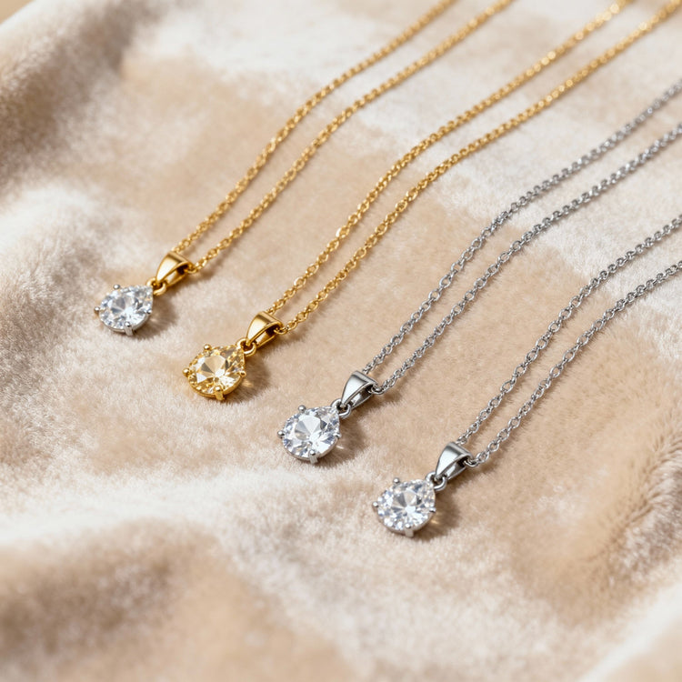 Una colección de collares diseñados para destacar la feminidad y la sofisticación. Cada pieza combina líneas finas con detalles brillantes que capturan la luz desde cualquier ángulo. Ideal para ocasiones especiales o para elevar tu estilo diario.