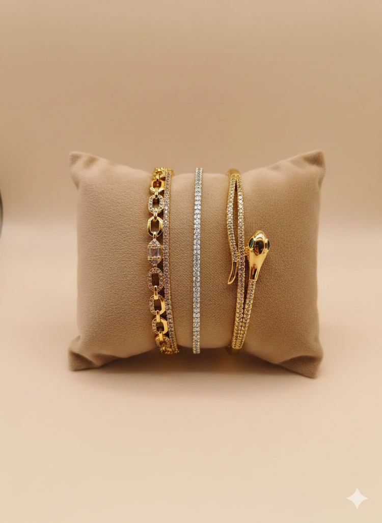 Oro y Brillo: Un Trío de Pulseras con Carácte