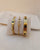 Esta imagen presenta un deslumbrante trío de pulseras doradas, elegantemente dispuestas sobre un pequeño cojín blanco. A la izquierda, una pulsera de cadena gruesa con eslabones entrelazados de oro, destaca por un broche rectangular con la letra "S" en un intenso color azul, aportando un toque de personalización y modernidad. En el centro, una pulsera rígida dorada con un diseño de herradura o estribo, completamente adornada con pequeños brillantes que capturan la luz. La pulsera se extiende con delicadas filas de brillantes a lo largo de su brazalete, añadiendo un toque de sofisticación. A la derecha, una pulsera rígida dorada presenta un diseño perforado de motivos de trébol de cuatro hojas, algunos de ellos con un fondo esmaltado en azul oscuro o negro, que crea un contraste elegante y distintivo. Juntas, estas pulseras ofrecen una combinación de texturas, brillo y un toque de color, perfectas para quienes buscan accesorios con carácter y un estilo único.
