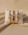 Esta imagen presenta un deslumbrante trío de pulseras doradas, elegantemente dispuestas sobre un pequeño cojín blanco que descansa sobre una tela satinada beige. A la izquierda, una pulsera rígida dorada con forma de clavo, cuya cabeza y punta están delicadamente decoradas con pequeños brillantes, aportando un toque audaz y contemporáneo. En el centro, una pulsera rígida dorada de diseño limpio y moderno, presenta una sección central alargada con tres brillantes redondos engastados, que parecen flotar y capturar la luz con cada movimiento. A la derecha, una pulsera rígida dorada con un diseño de herradura o estribo, completamente incrustada con brillantes que añaden un brillo continuo y sofisticado. La pulsera se extiende con delicadas filas de brillantes a lo largo de su brazalete. Juntas, estas pulseras ofrecen una combinación de diseños icónicos y brillo, perfectas para quienes buscan añadir un toque de lujo y modernidad a su estilo.